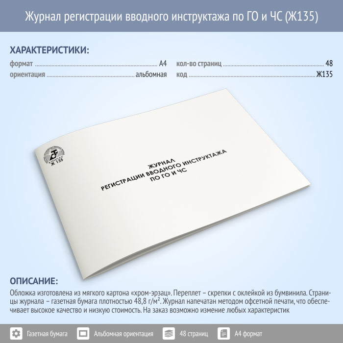 Журнал регистрации вводного инструктажа по ГО и ЧС (48 стр., Ж135) в Чите купить