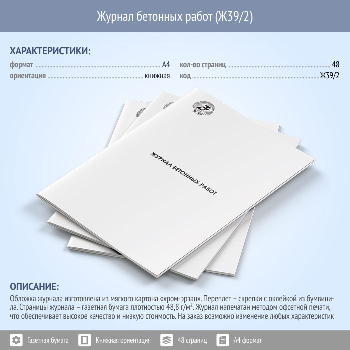 Журнал бетонных работ (48 стр., Ж39/2) в Чите купить