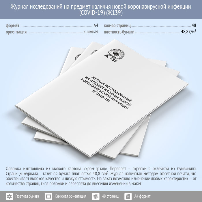 Журнал исследований на предмет наличия новой коронавирусной инфекции (COVID-19) (48 стр., Ж139) в Чите купить