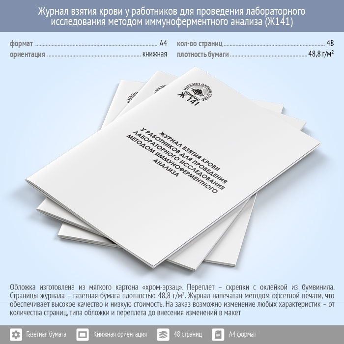 Журнал взятия крови у работников для проведения лабораторного исследования методом иммуноферментного анализа (48 стр., Ж141) в Чите купить