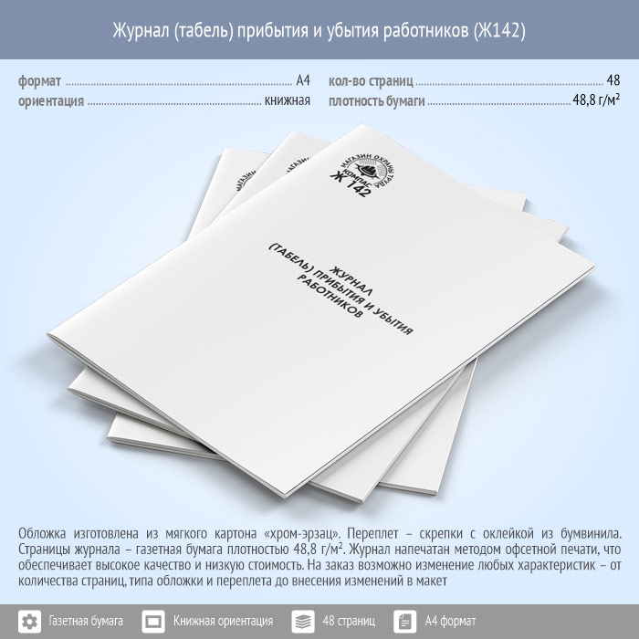 Журнал (табель) прибытия и убытия работников (48 стр., Ж142) в Чите купить