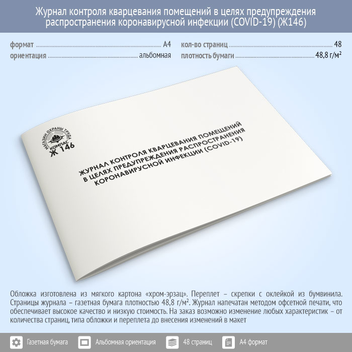 Журнал контроля кварцевания помещений в целях предупреждения распространения коронавирусной инфекции (COVID-19) (48 стр., Ж146) в Чите купить