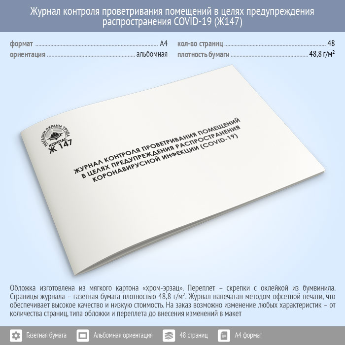 Журнал контроля проветривания помещений в целях предупреждения распространения коронавирусной инфекции (COVID-19) (48 стр., Ж147) в Чите купить