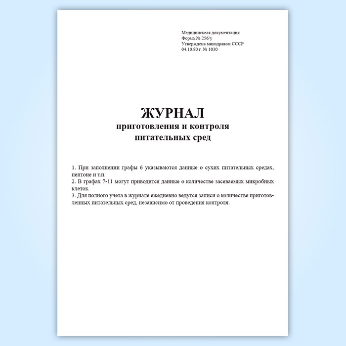 Журнал приготовления и контроля питательных сред (форма 256/у) в Чите купить