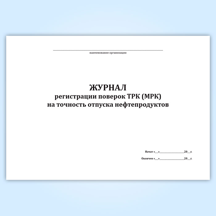 Журнал регистрации поверок ТРК (МРК) на точность отпуска нефтепродуктов в Чите купить