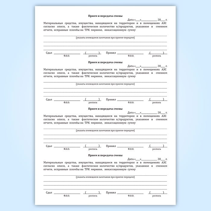 Журнал приема и передачи смен на АЗС в Чите купить