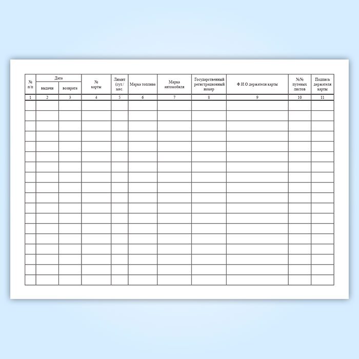 Журнал учета приема и выдачи многоразовых литровых топливных карт в Чите купить