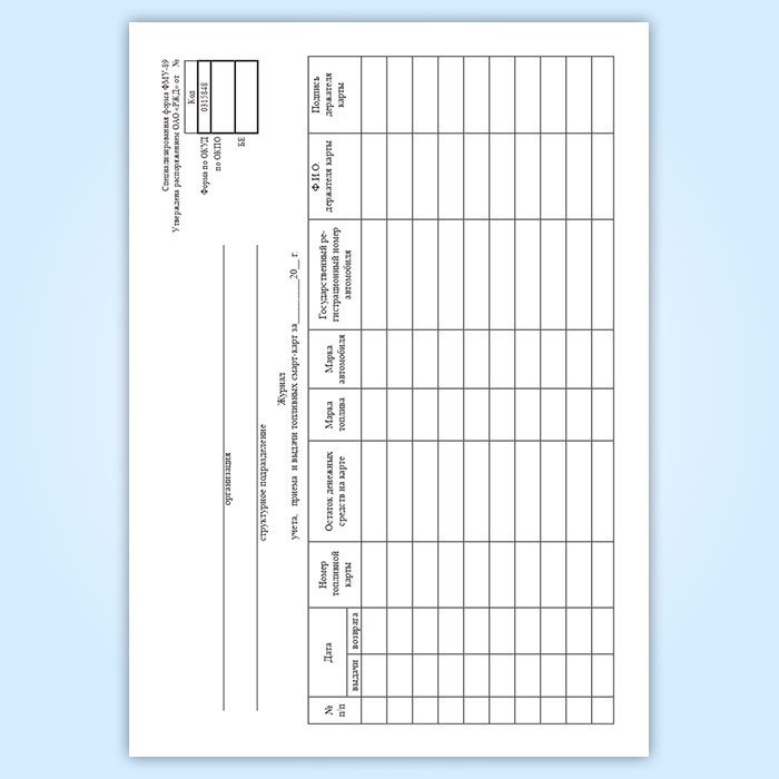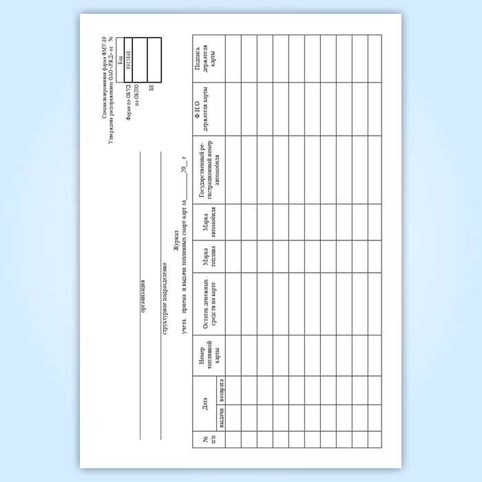 Журнал учета, приема и выдачи топливных смарт-карт в Чите купить
