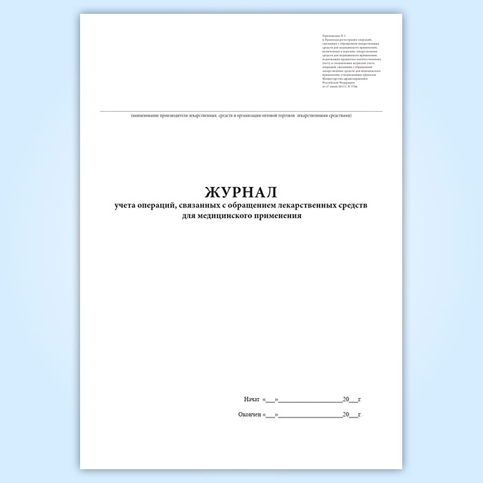 Журнал учета операций, связанных с обращением лекарственных средств для медицинского применения (для производителя лекарственных средств и организации оптовой торговли лекарственными средствами) в Чите купить