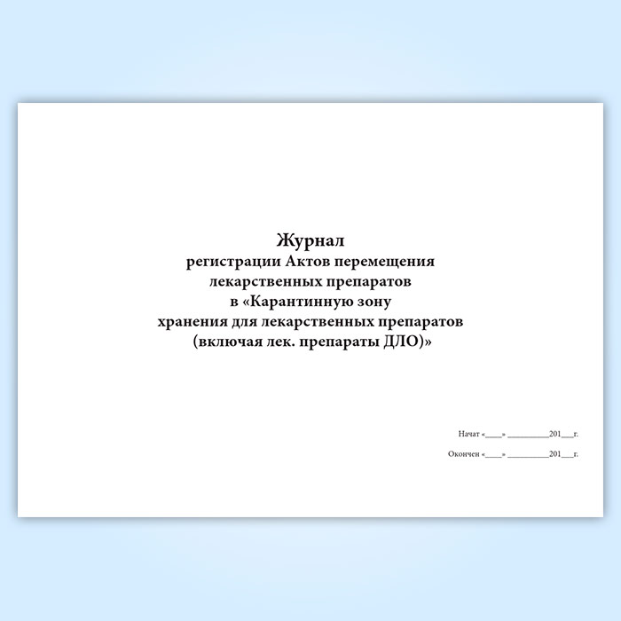 Журнал регистрации Актов перемещения лекарственных препаратов в «Карантинную зону хранения для лекарственных препаратов (включая лек. препараты ДЛО)» в Чите купить