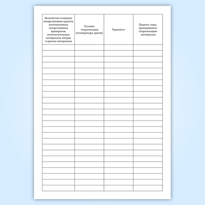 Журнал регистрации режима стерилизации исходных лекарственных средств, изготовленных лекарственных препаратов, вспомогательных материалов, посуды и прочих материалов в Чите купить
