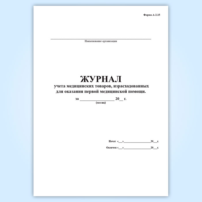 Журнал учета медицинских товаров, израсходованных для оказания первой медицинской помощи (форма А-2.15) в Чите купить