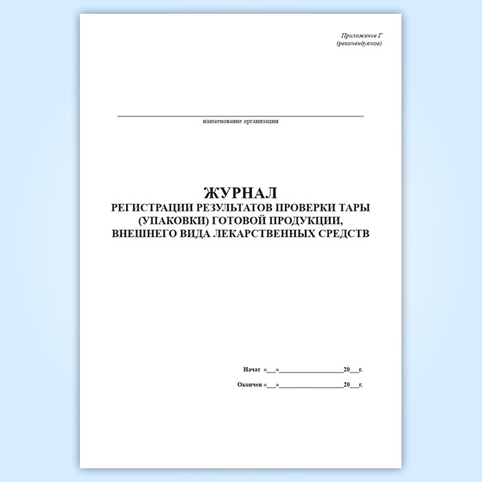 Журнал регистрации результатов проверки тары (упаковки) готовой продукции, внешнего вида лекарственных средств (форма Г) в Чите купить