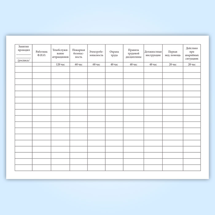 Журнал по обучению персонала передвижного городка аттракционов в Чите купить