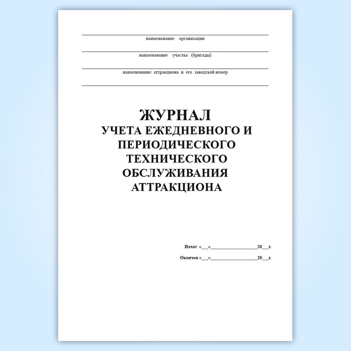 Журнал учета ежедневного и периодического технического обслуживания аттракциона в Чите купить