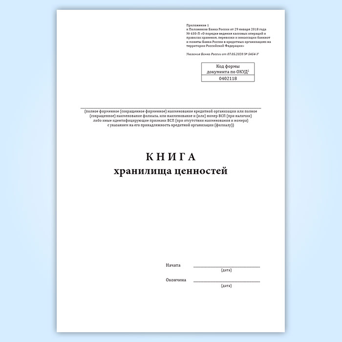Книга хранилища ценностей (форма по ОКУД 0402118) в Чите купить