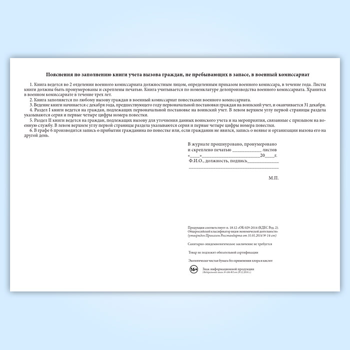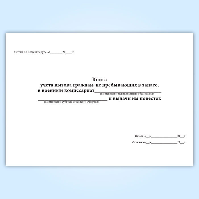 Книга учета вызова граждан, не пребывающих в запасе, в военный комиссариат и выдачи им повесток в Чите купить