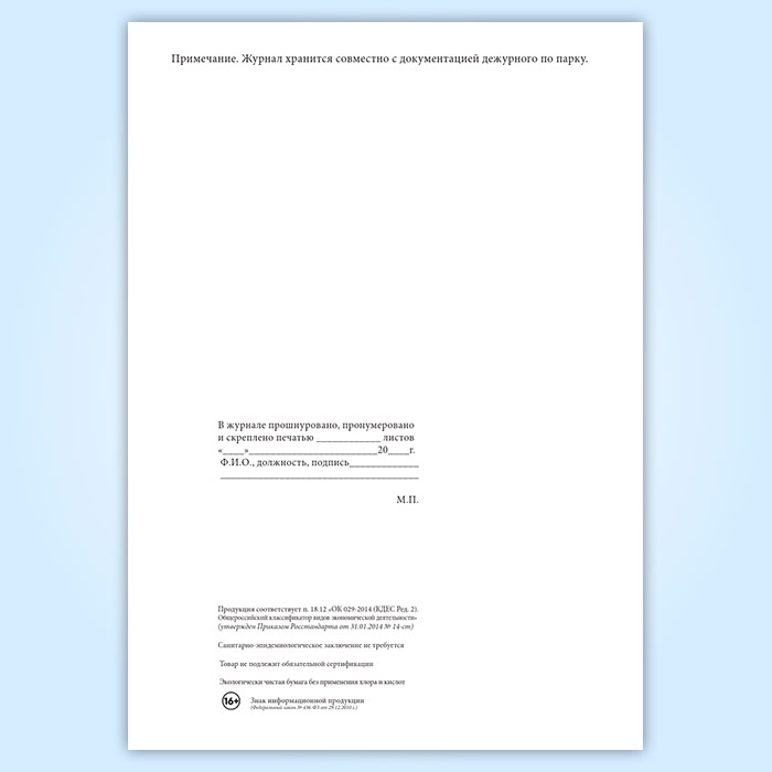 Вы получаете печатную продукцию прошнурованной и c местом для вашей печати в соответствии с действующими нормативными документами: