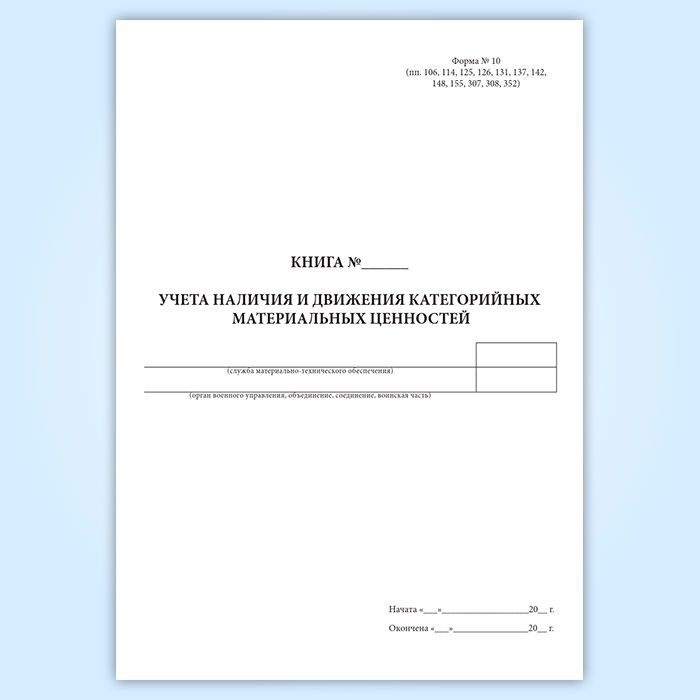 Книга учета наличия и движения категорийных материальных ценностей (форма 10) в Чите купить