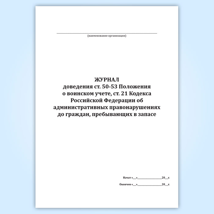 Журнал доведения ст. 50-53 Положения о воинском учете, ст. 21 Кодекса Российской Федерации об административных правонарушениях до граждан, пребывающих в запасе в Чите купить
