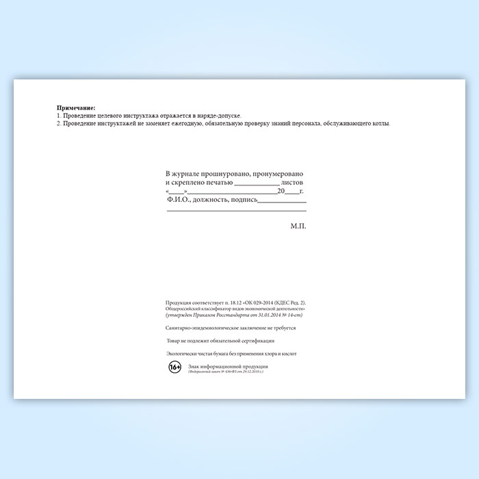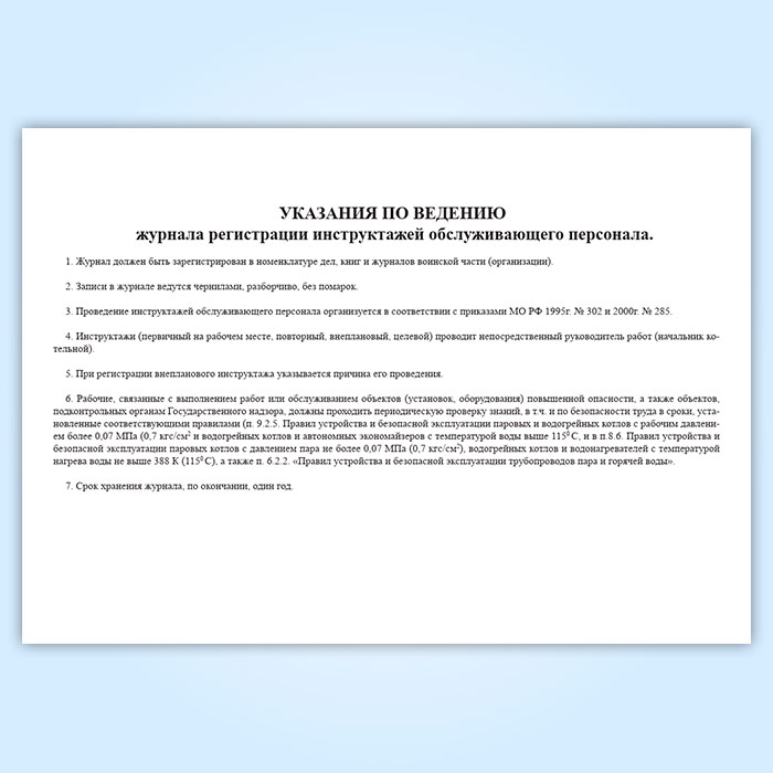 Журнал регистрации инструктажей обслуживающего персонала котельной (для воинских частей, предприятий и организаций) в Чите купить