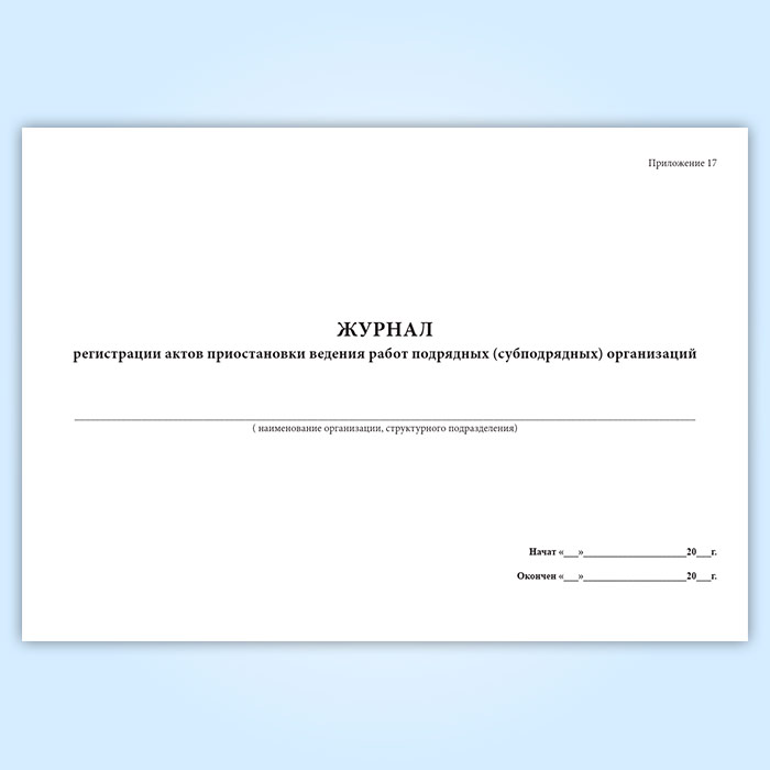 Журнал регистрации актов приостановки ведения работ подрядных (субподрядных) организаций в Чите купить