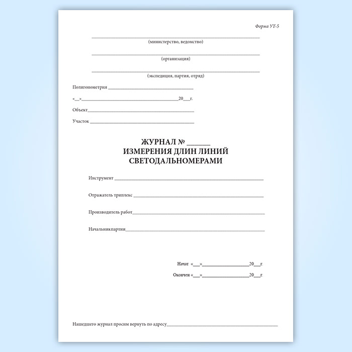 Журнал измерения длин линий светодальномерами (форма УТ-5) в Чите купить