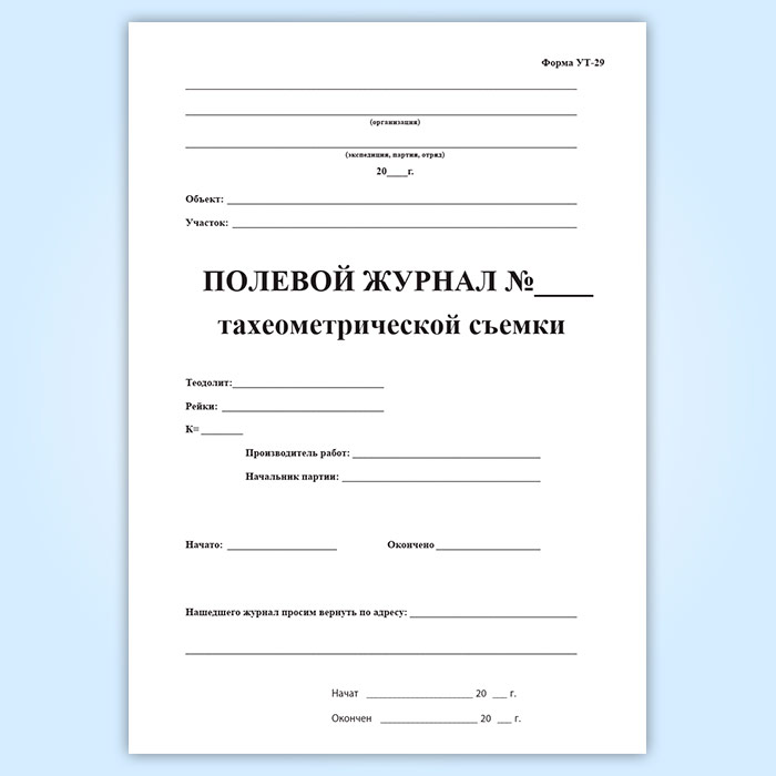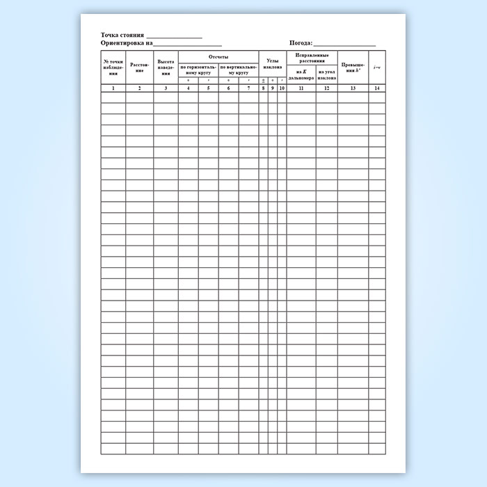 Полевой журнал тахеометрической съемки в Чите купить
