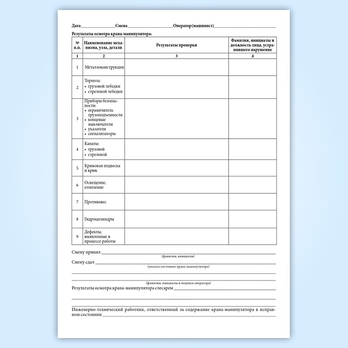 Вахтенный журнал приема-сдачи смен машинистами крана-манипулятора в Чите купить
