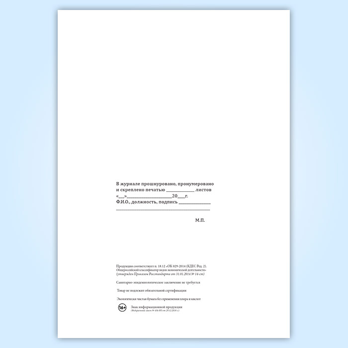 Вы получаете печатную продукцию прошнурованной и c местом для вашей печати в соответствии с действующими нормативными документами: