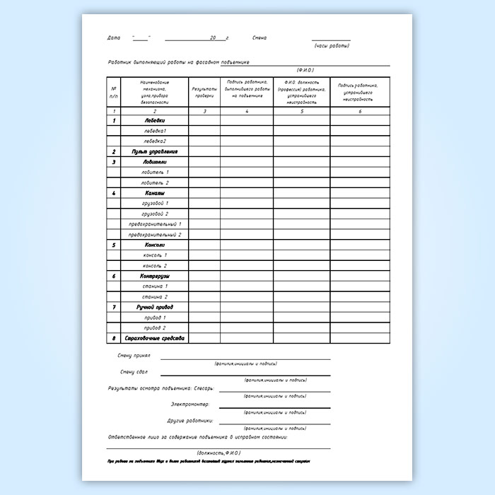 Вахтенный журнал фасадного двухподвесного подъемника в Чите купить