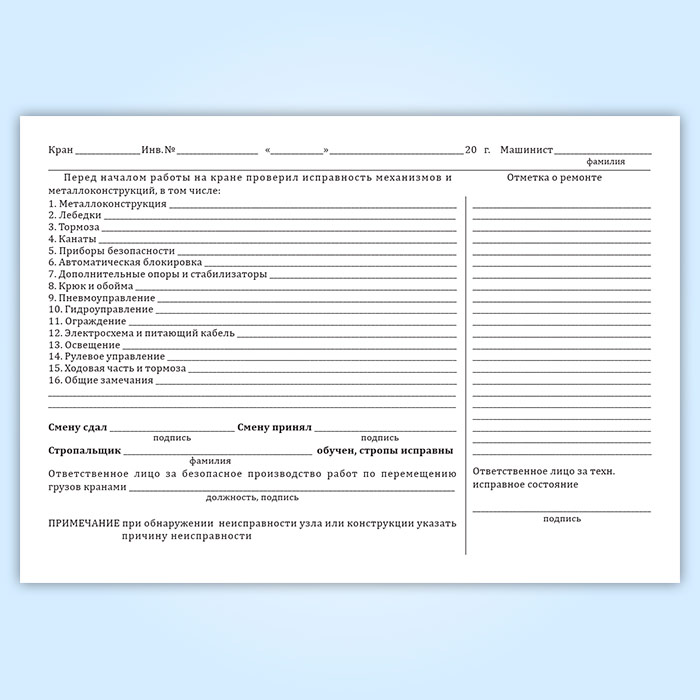 Вахтенный журнал г/п крана в Чите купить