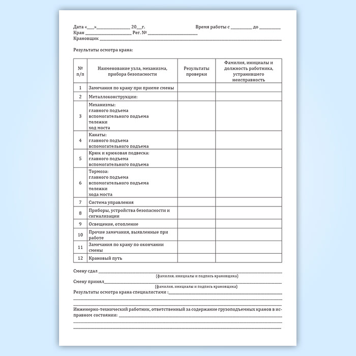 Вахтенный журнал машиниста мостового крана в Чите купить