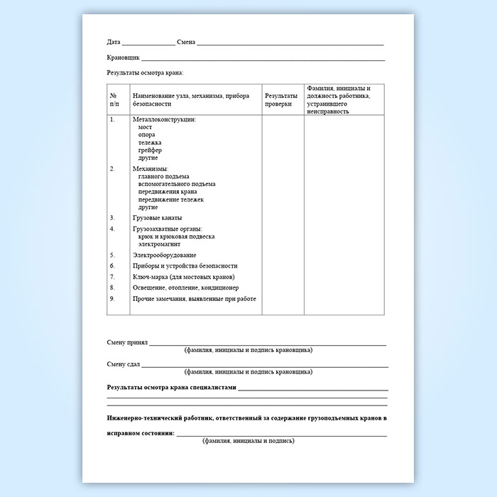 Вахтенный журнал крановщика (кранов мостового типа) в Чите купить