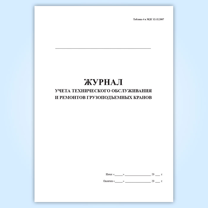Журнал учета технического обслуживания и ремонтов грузоподъемных кранов в Чите купить