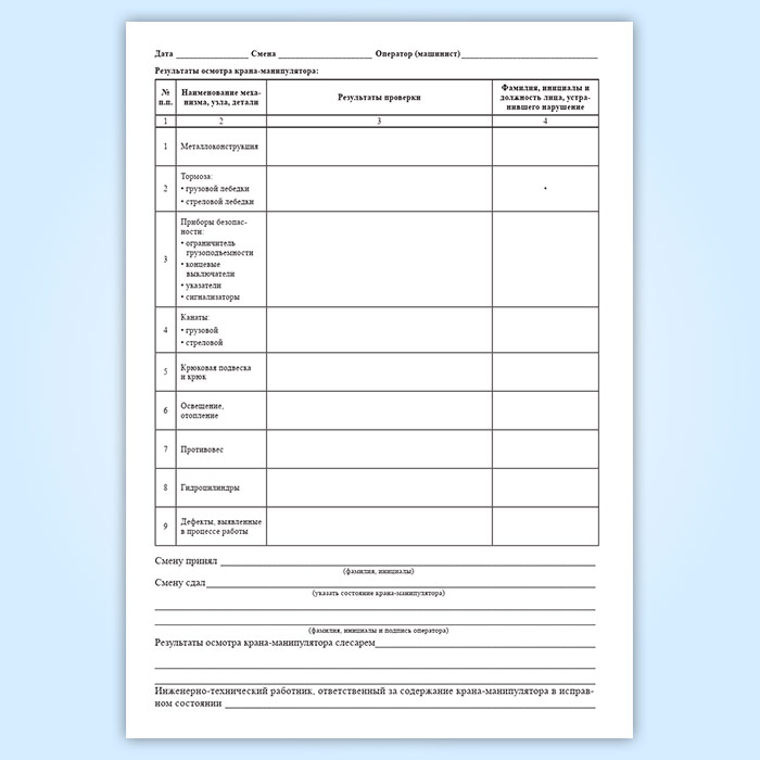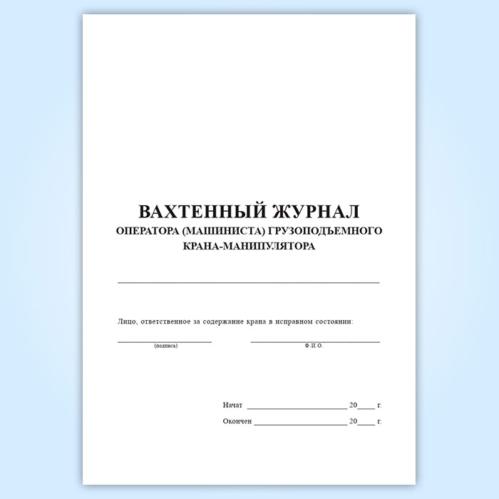 Вахтенный журнал оператора (машиниста) грузоподъемного крана-манипулятора в Чите купить