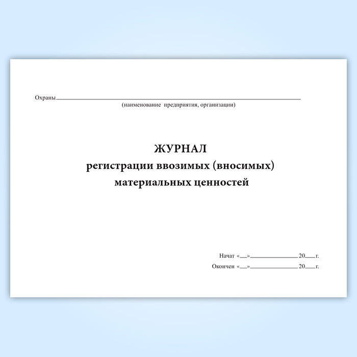 Журнал регистрации ввозимых (вносимых) материальных ценностей в Чите купить