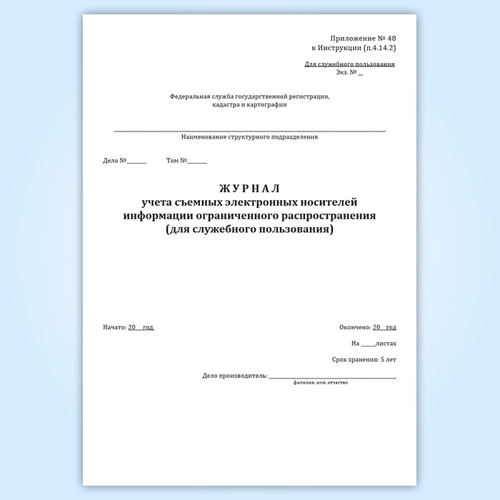 Журнал учета съемных электронных носителей информации ограниченного распространения (для служебного пользования) в Чите купить