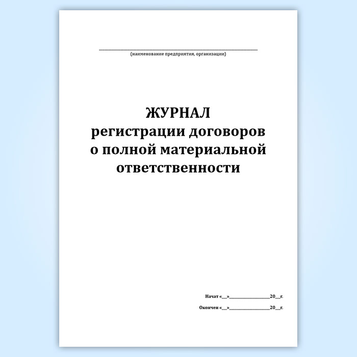 Журнал регистрации договоров о полной материальной ответственности в Чите купить
