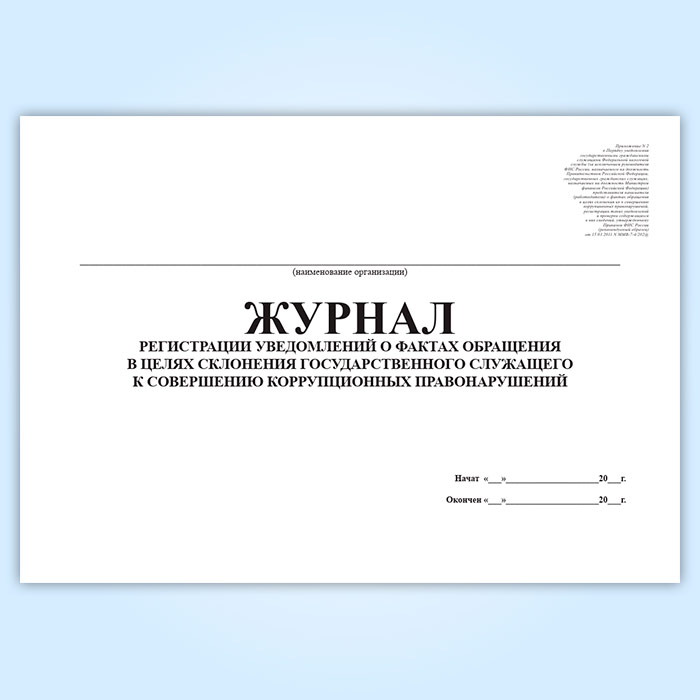 Журнал регистрации уведомлений о фактах обращения в целях склонения государственного служащего к совершению коррупционных правонарушений в Чите купить
