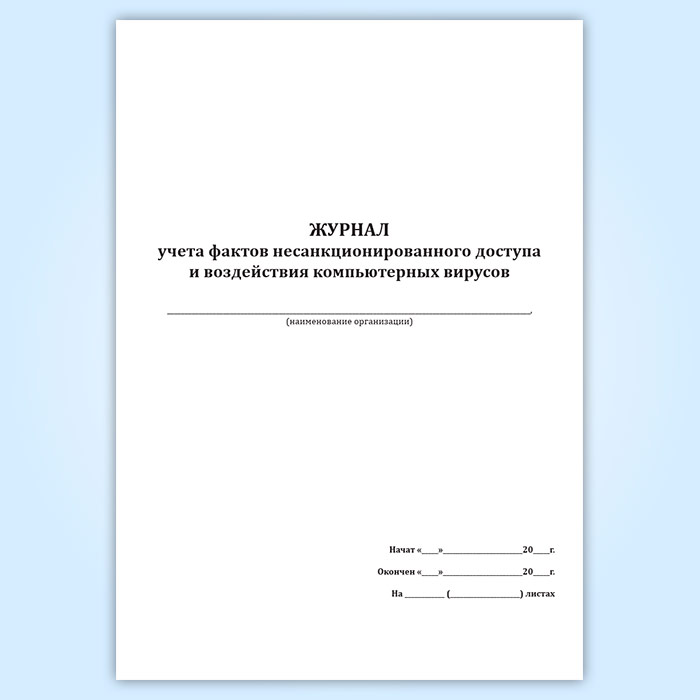 Журнал учета фактов несанкционированного доступа и воздействия компьютерных вирусов в Чите купить