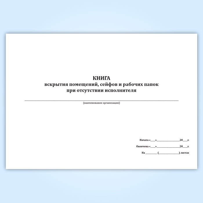 Книга вскрытия помещений, сейфов и рабочих папок при отсутствии исполнителя в Чите купить