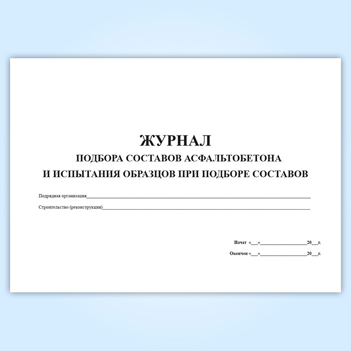 Журнал подбора составов асфальтобетона и испытания образцов при подборе составов в Чите купить