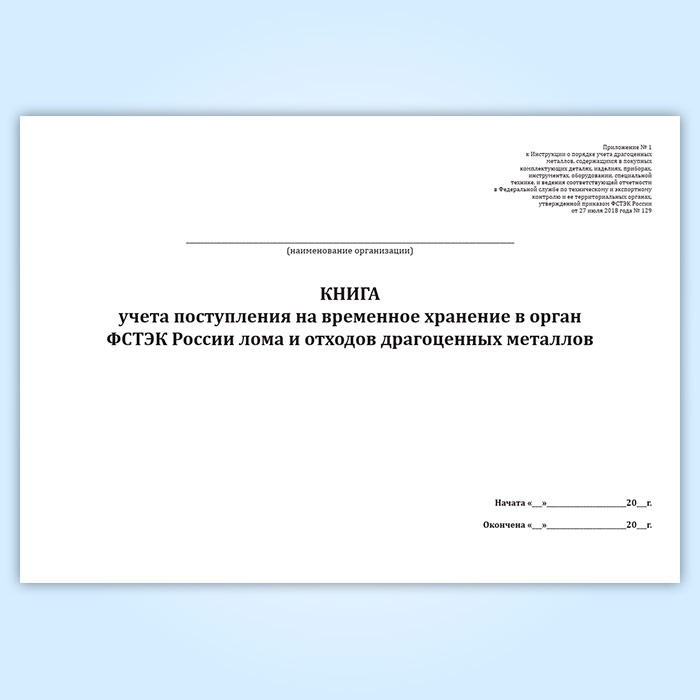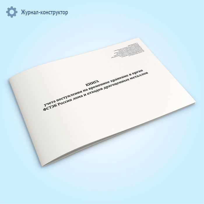 Книга учета поступления на временное хранение в орган ФСТЭК России лома и отходов драгоценных металлов в Чите купить