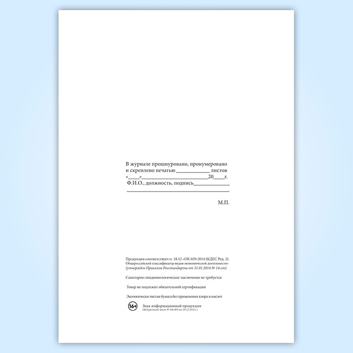 Вы получаете печатную продукцию прошнурованной и c местом для вашей печати в соответствии с действующими нормативными документами: