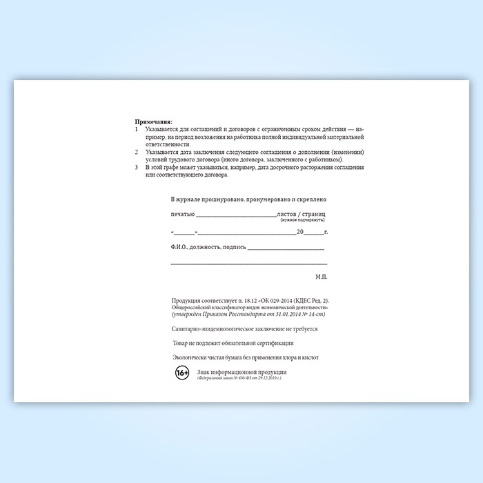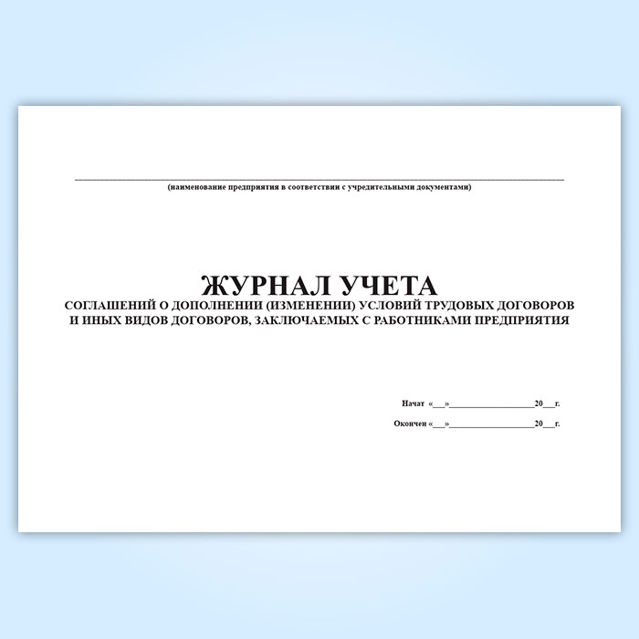 Журнал учета соглашений о дополнении (изменении) условий трудовых договоров и иных видов договоров, заключаемых с работниками предприятия в Чите купить