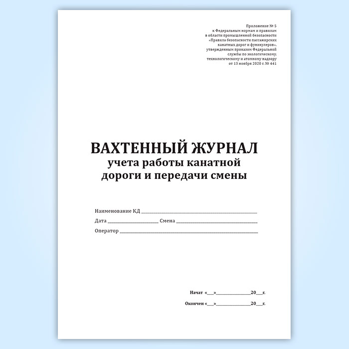 Вахтенный журнал учета работы канатной дороги и передачи смены в Чите купить
