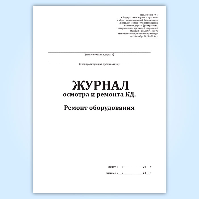 Журнал осмотра и ремонта канатной дороги. Ремонт оборудования (форма № 10) в Чите купить