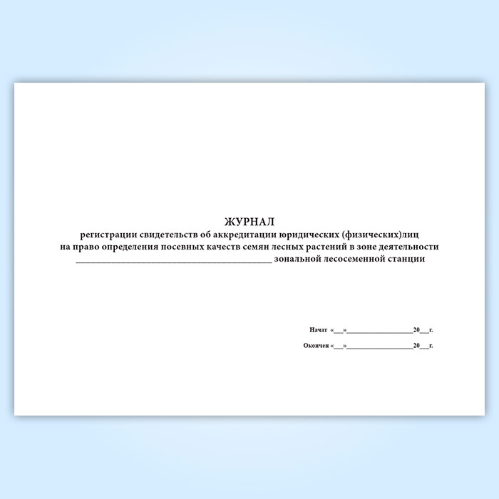 Журнал регистрации свидетельств об аккредитации юридических (физических) лиц на право определения посевных качеств семян лесных растений в зоне деятельности зональной лесосеменной станции в Чите купить