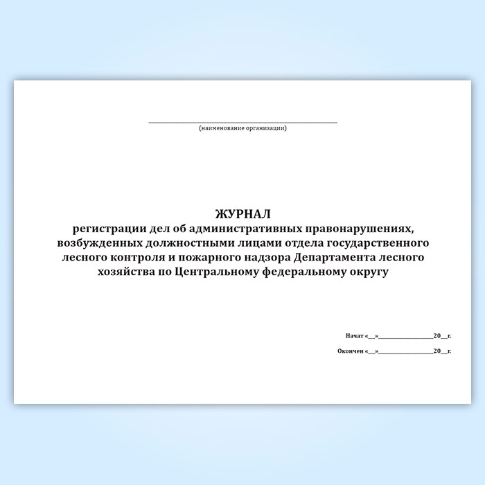 Журнал регистрации дел об административных правонарушениях, возбужденных должностными лицами отдела государственного лесного контроля и пожарного надзора Департамента лесного хозяйства по Центральному федеральному округу в Чите купить